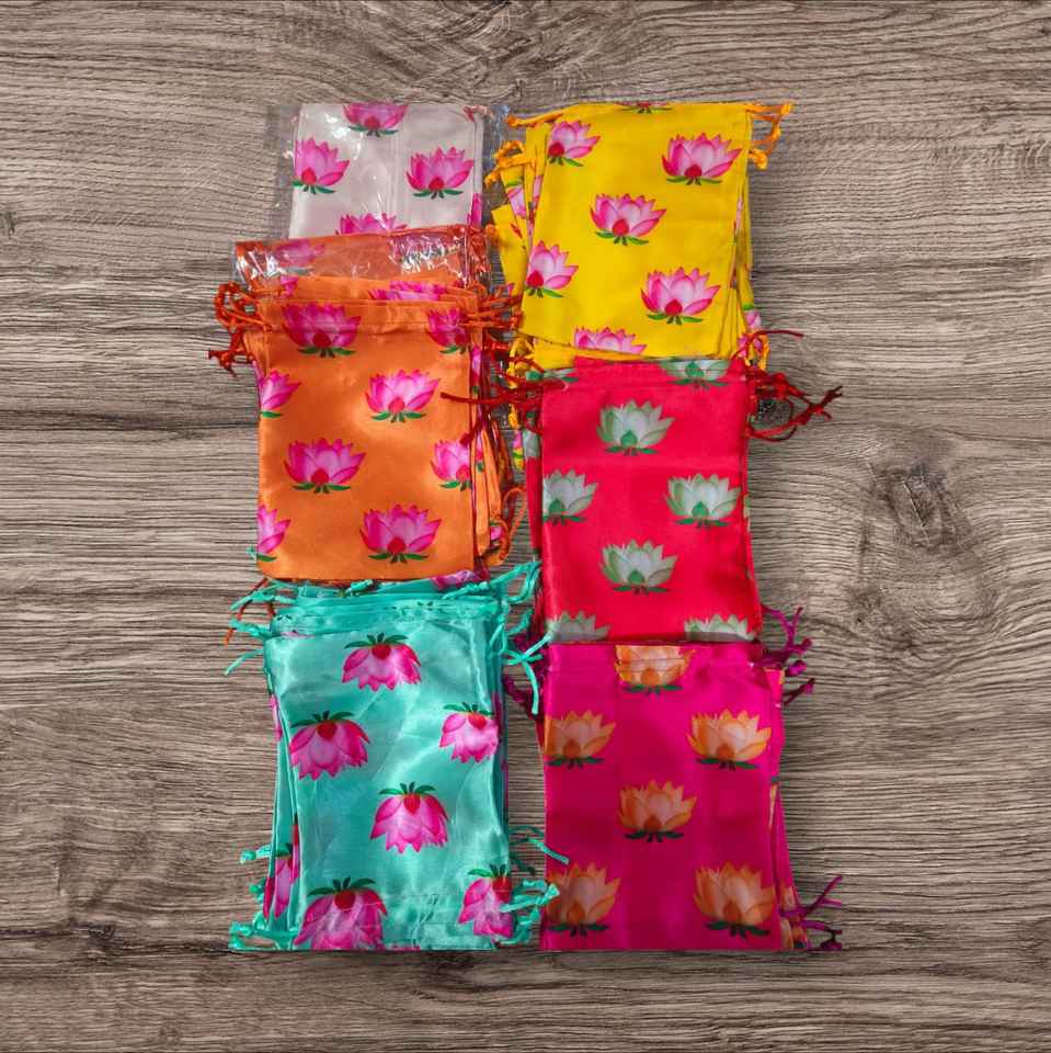 PICHWAI LOTUS PRINT SATIN POTLI BAG Comfortable Indian Traditional Fashion Multi Colour Unisex