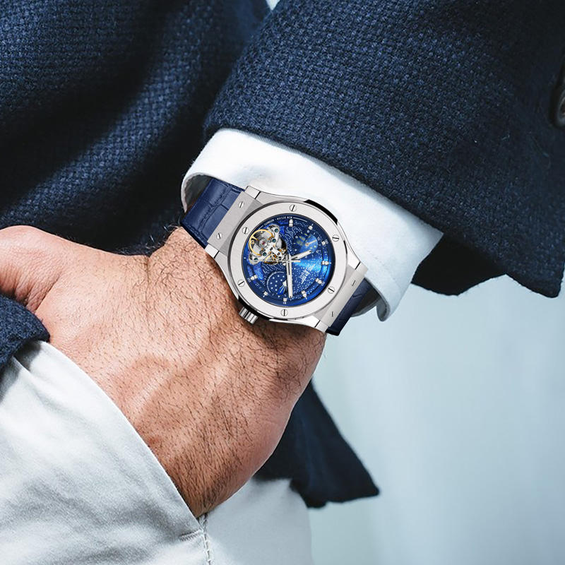PINDU Design Luxury Business Automatic Watch Men Waterproof Mechanical Dress Wristwatch Stainless Steel Montre Homme Gift OEM