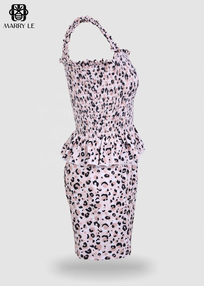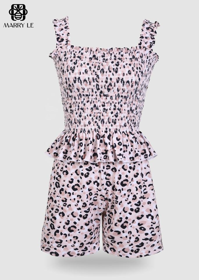 PINK CHETAH PEPLUM SHIRRING HOMEWEAR SET - MD33 Women's Clothing Set 2 Pieces Comfy and Fassional