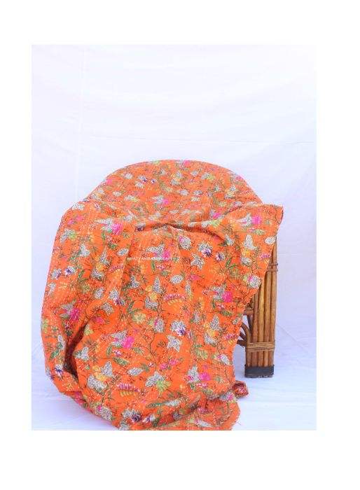 PINK Paradise Print Kantha Quilt Indian Vintage Quilt Handmade Kantha Throw Cotton Kantha Bedspread