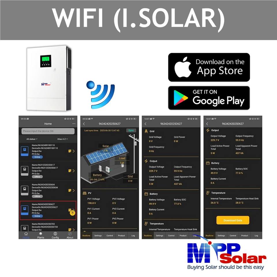 PIP 6248GEW 6200W 48v 220-240Vac AC to AC MPP Solar Single Inverter 500vdc 100A Wifi Battery Charger Pure Sine Wave 99%