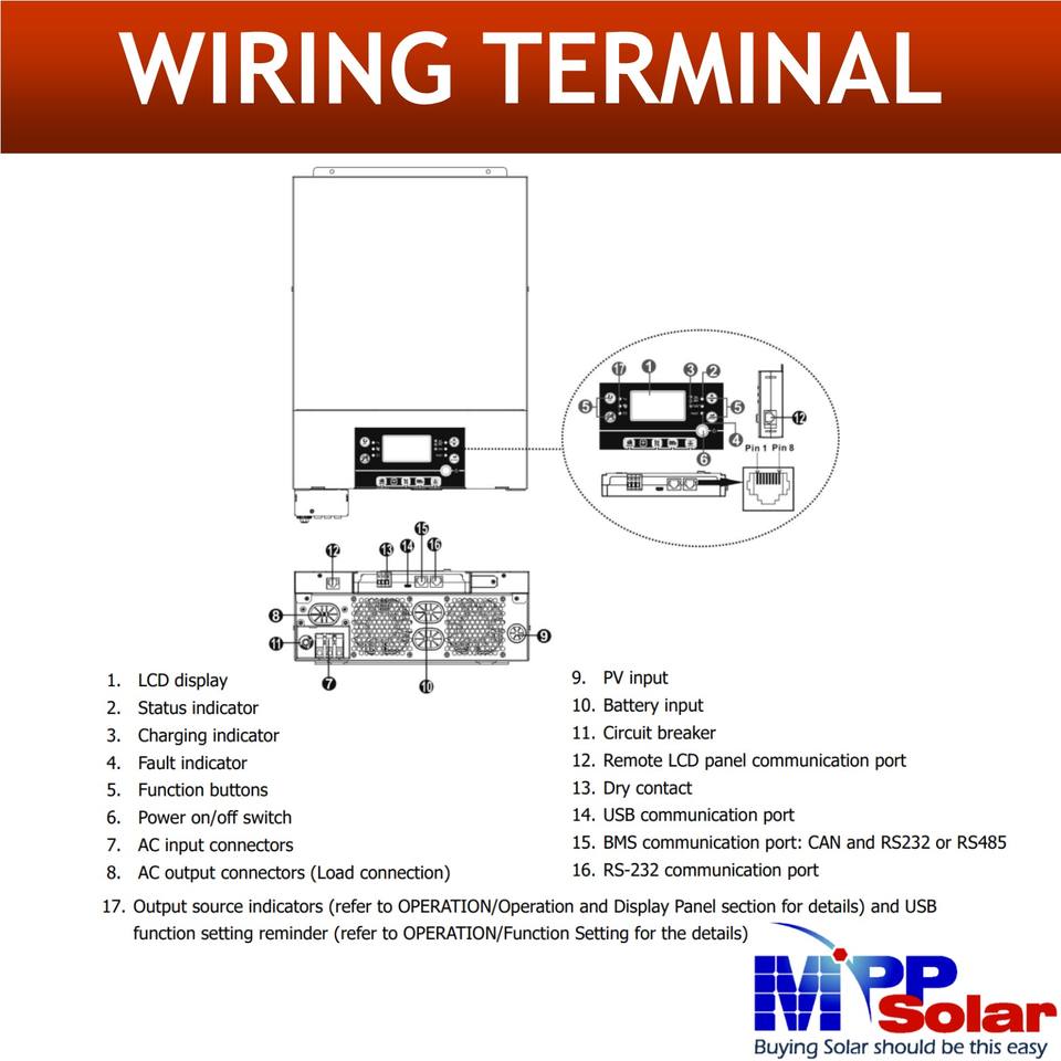 PIP4024MT 4000W MPP Solar Inverter 120A MPPT Charger 500V Battery Pure Sine Wave Single Phase Grid 120A PV Input 99% Efficiency