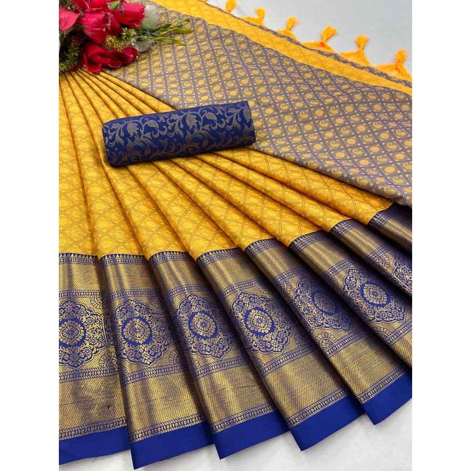 PLAIN PARTY WEAR AURA COTTON SILK SAREE YELLOW