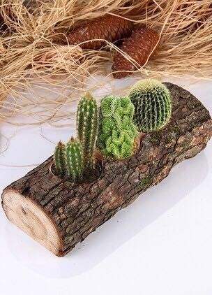 PLANTRES HANDICRAFTS Wooden Flowerpot Wishing Well Planter Backyard Garden Creative Wooden Planters Bark Flower Pots Garden