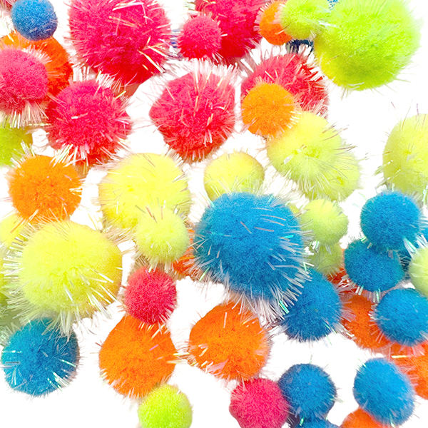 PLOMA 75 Pcs Assorted Sizes 10-25mm Fluffy PP Neon Colors & Glitter Non-Toxic Custom Crafts Pom Pom Decorations