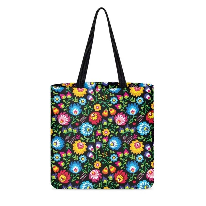 POD Dropship Lady Handbag Mexican Flower Pattern Girl Shoulder Bag Personality Double-sided Printing Shopping Bag for Womens