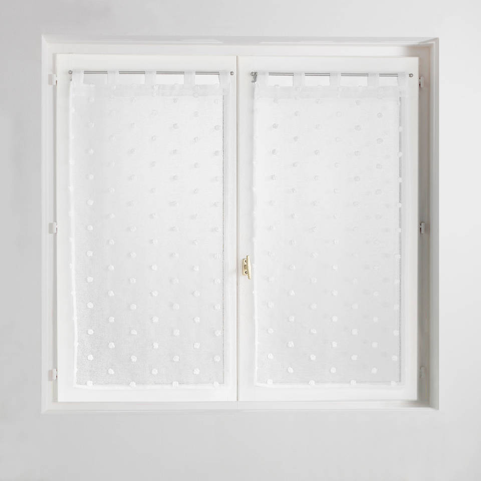 POMPINOU LINE - STRAIGHT CURTAIN WITH EYE-CLOSURES 60X120 WHITE WITH POMPONS