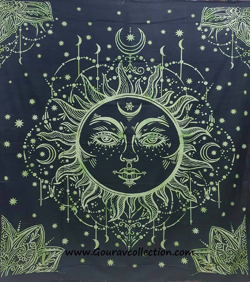 POTLY SUN FACE PRINT Bohemian Hippie Style Indian Design Bed Sheets Wall Hanging Home Decor Tapestries for Bedroom GC-TPDB-289