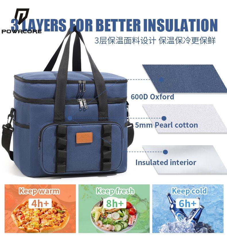 POWACORE Large Capacity Outdoor Cooler Box Free Sample Wholesale Thickened Aluminum Foil Insulation for Camping Cold Pack Fruit