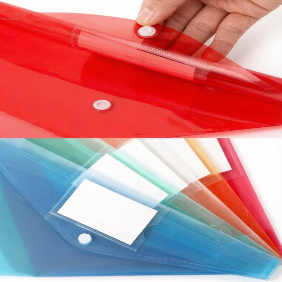 PP A4 Plastic Pocket File Folder with Snap Button, Waterproof Document Envelope Wallet School Office Binder Documents Organizer