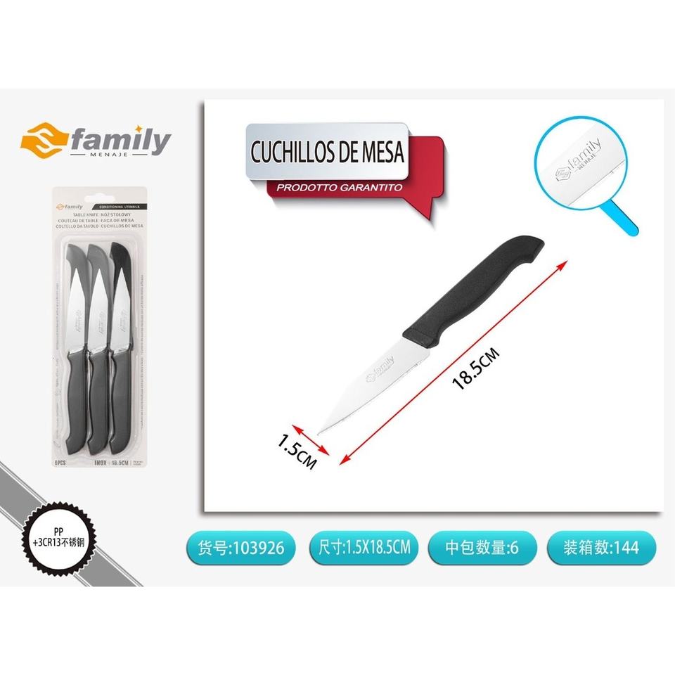 PP Table Knives 18.5cm 6pc - Elegant Table Cutlery