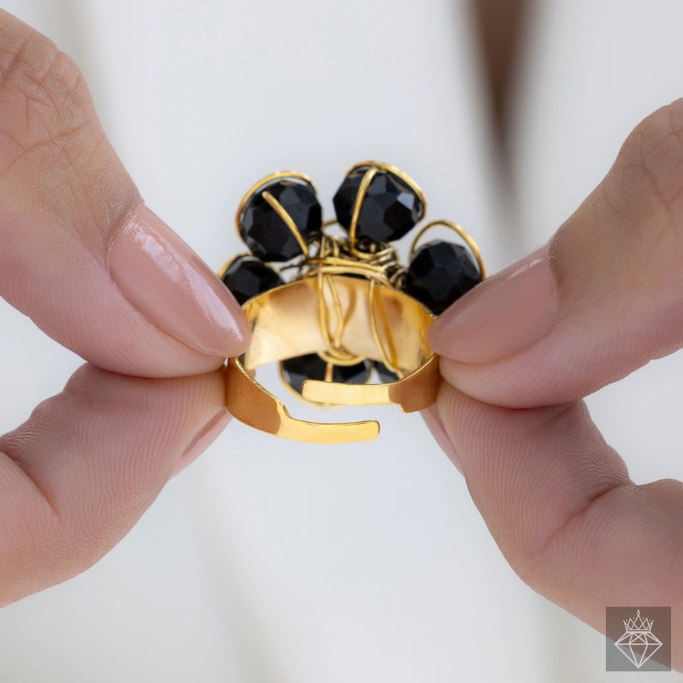 PRAO Alluring Black Crystal Cocktail Ring (Adjustable Size)