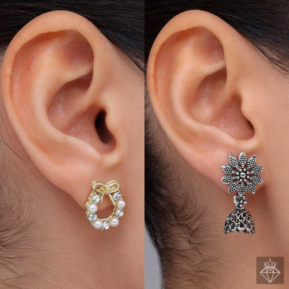 PRAO COMBO Fashionable Stud Earrings Pearl Crystal Bali & Oxidised Jhumki