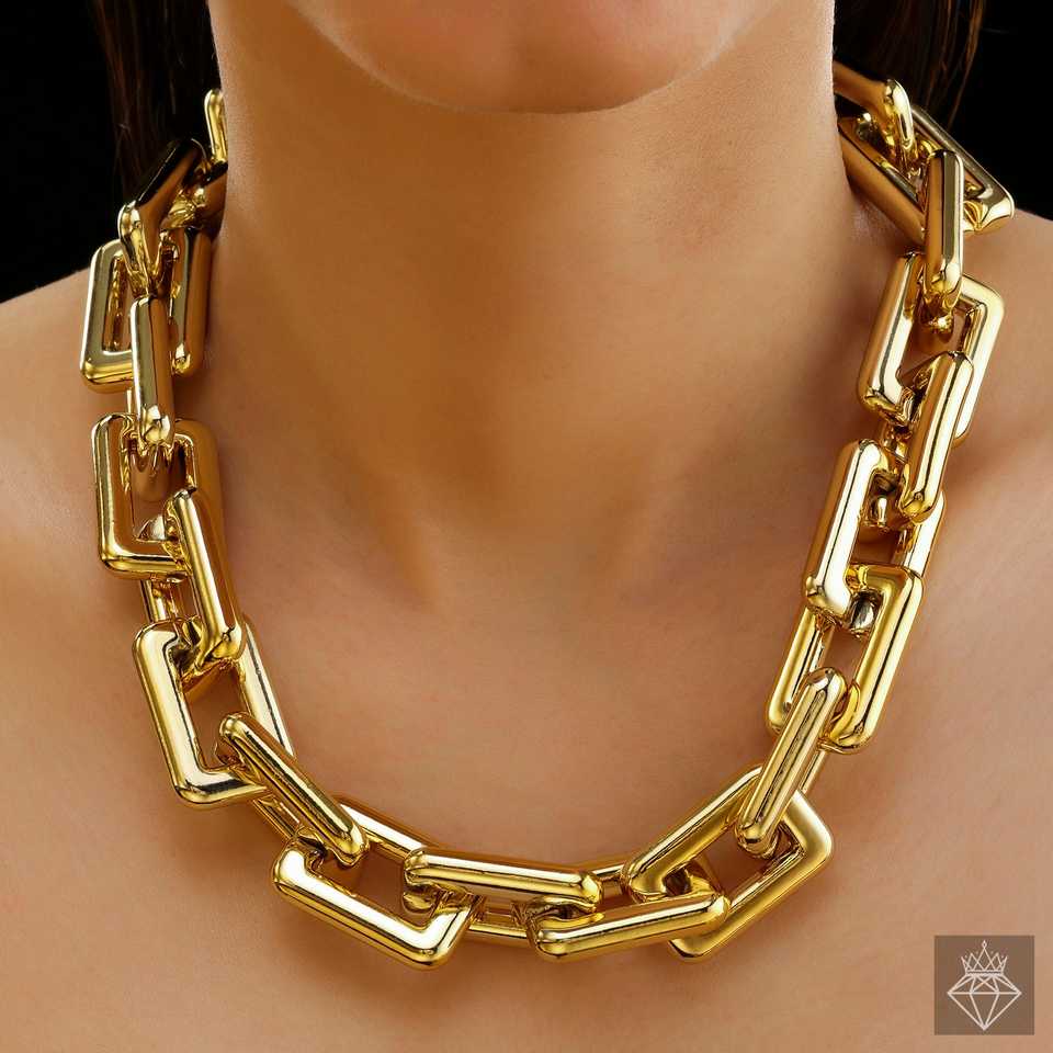 PRAO Gold Plated Anti-Tarnish Chunky Chain Necklace Set with Earrings Fashion Jewelry for Women