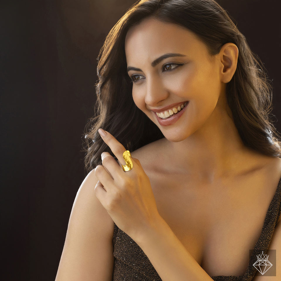 PRAO Handmade Anti-Tarnish Wavy Ring Fashion Brass Jewellery For Women Adjustable Size for Engagement Party or Anniversary