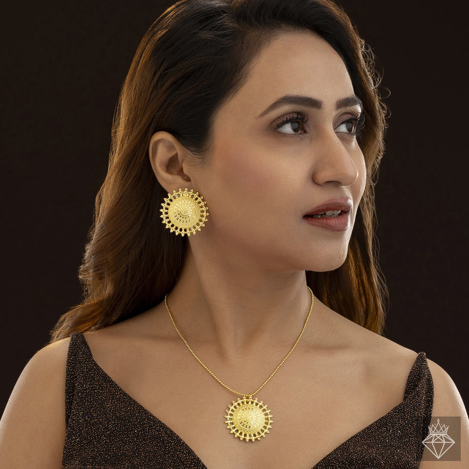 PRAO Handmade Bulk Fashion Jewellery Set Anti-Tarnish Sun Necklace and Earrings Gold Plated for Women's Weddings and Parties