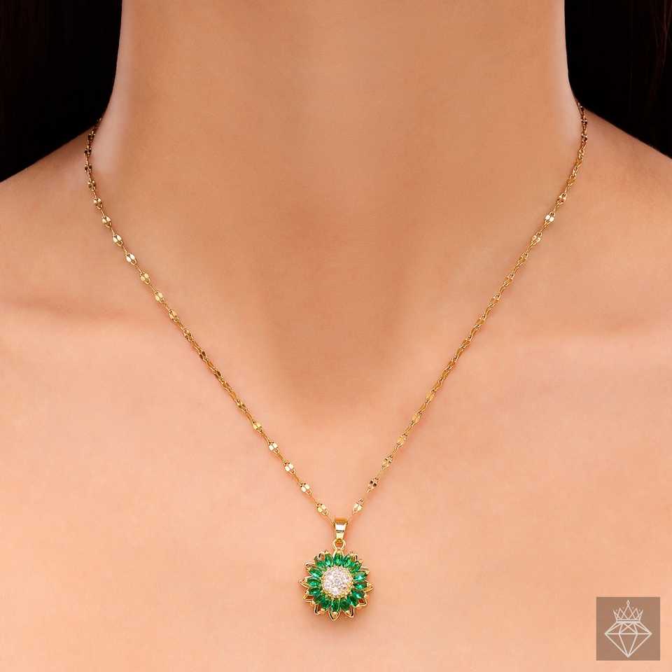 PRAO Rotatable Emerald Flower Pendant Necklace Fashionable Rotating Jewelry Accessory