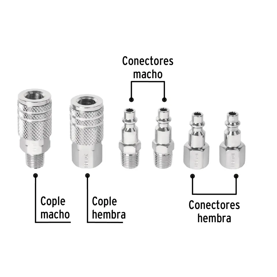 PRETUL Set of 4 Quick Connectors and 2 Couplings Box with 6 Units Steel Pneumatic Parts