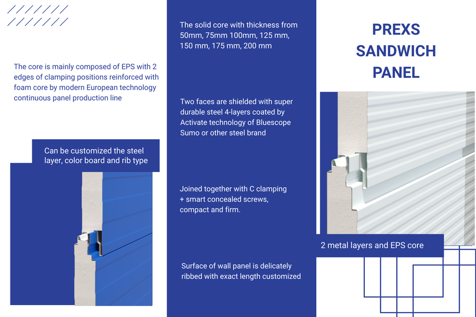 PREXS EPS Metal Sandwich Panel Modern External Wall Lightweight Low Cost Fast Installation Solution for Civil Prefab Building
