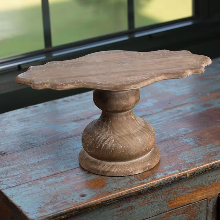 PRODUCTS HANDMADE DESGIN ROUNDED SHAPE BIRTHDAY CAKE SERVING Stand For Party Celebration Wooden Cake Server