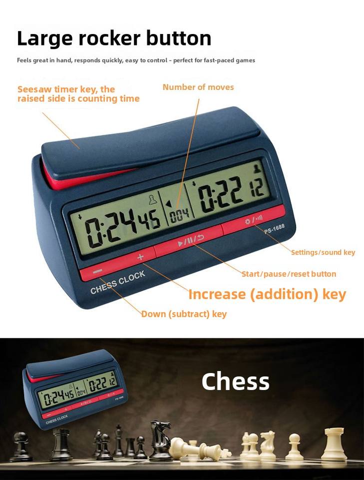 PS-1688 Digital Chess Clock, Multi-function Timer for Chinese Chess Go International, Tournament Grade Countdown Device