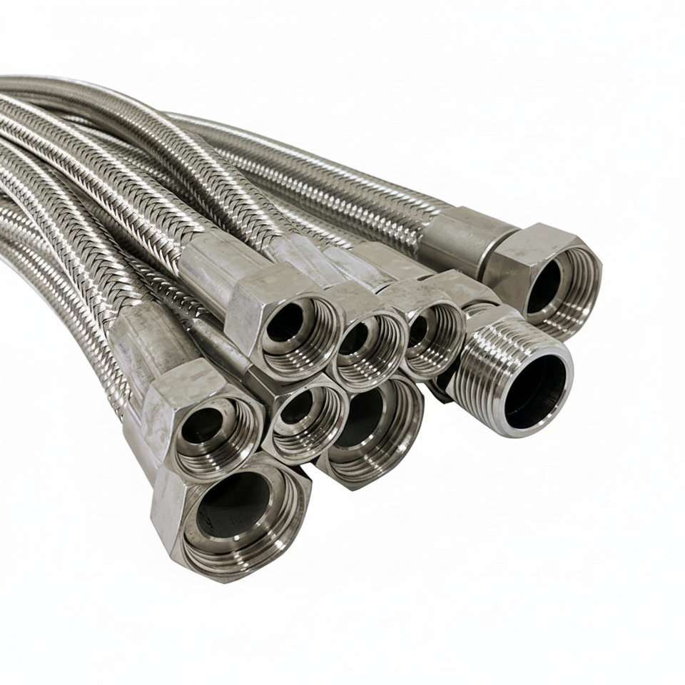 PTFE Braided Hose SAE100 R14 High Temperature Pressure Stainless Steel Wire 316L AN6 Corrugated Durable For Medical Devices