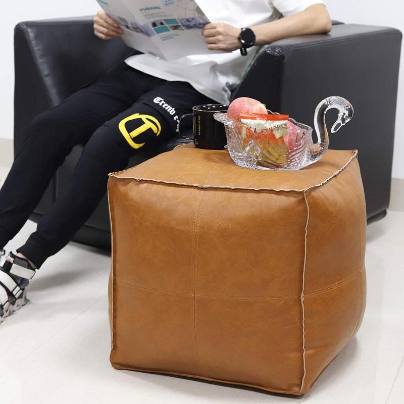 PU Artificial Leather Cushion Cover Ottoman square Bean Bag Chair Footstool