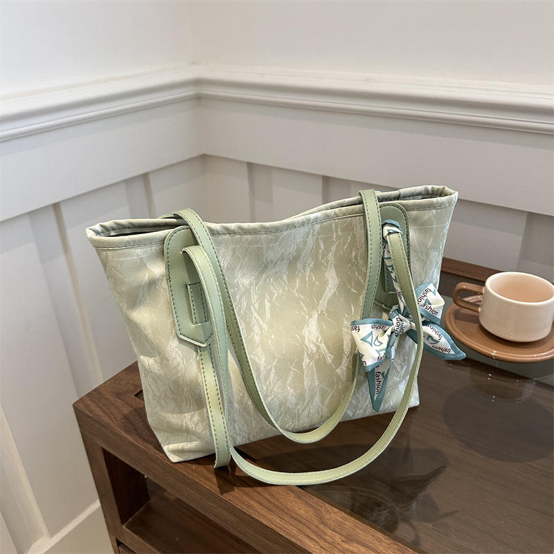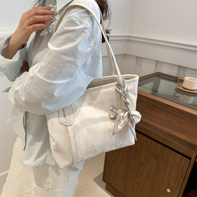 PU Leather Bag for Women Large Capacity Tote Bag Shoulder Bag With Ribbon
