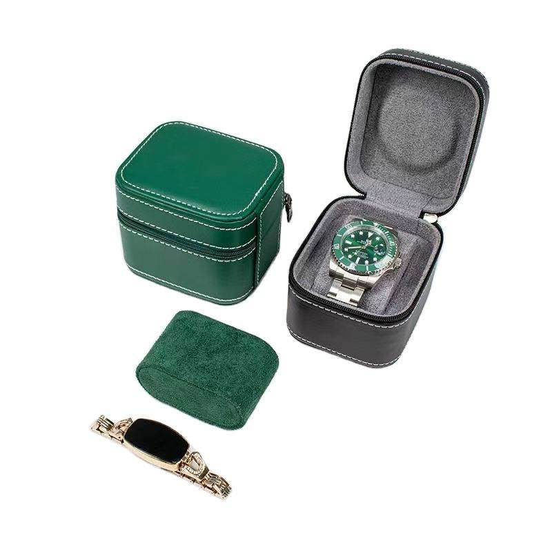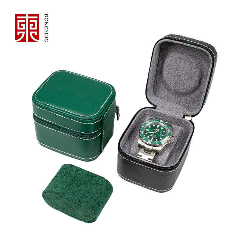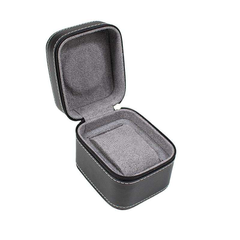 PU Leather Dustproof Watch Storage Box Portable Single Travel Arched Case with Zipper for Inside/Outside Use