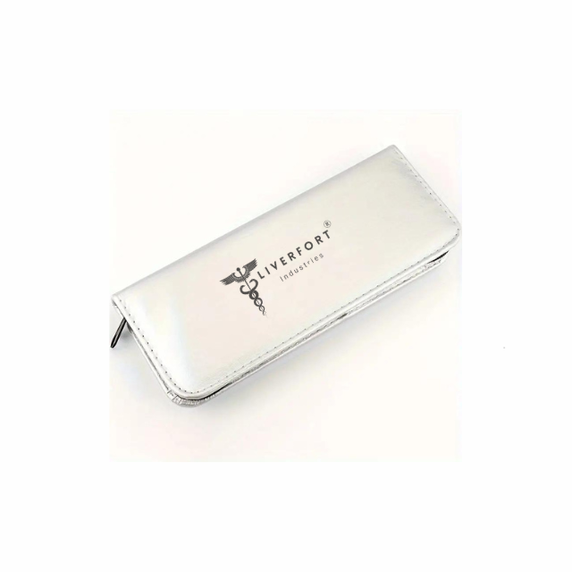 Barber groomers leather case with zipper Silver