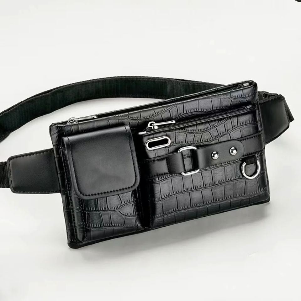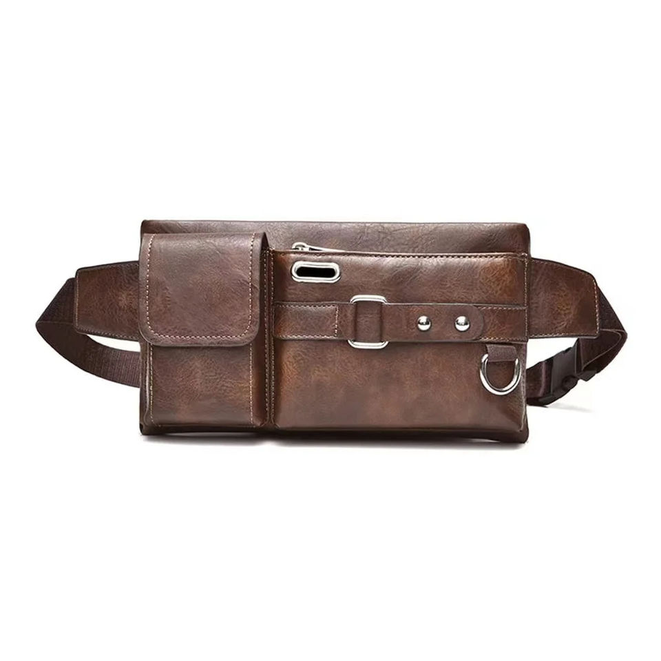 PU Leather Men's Waist Bag With Headphone Hole Wholesale Waterproof Shoulder Messenger for Outdoor Sport Travel Fanny Pack