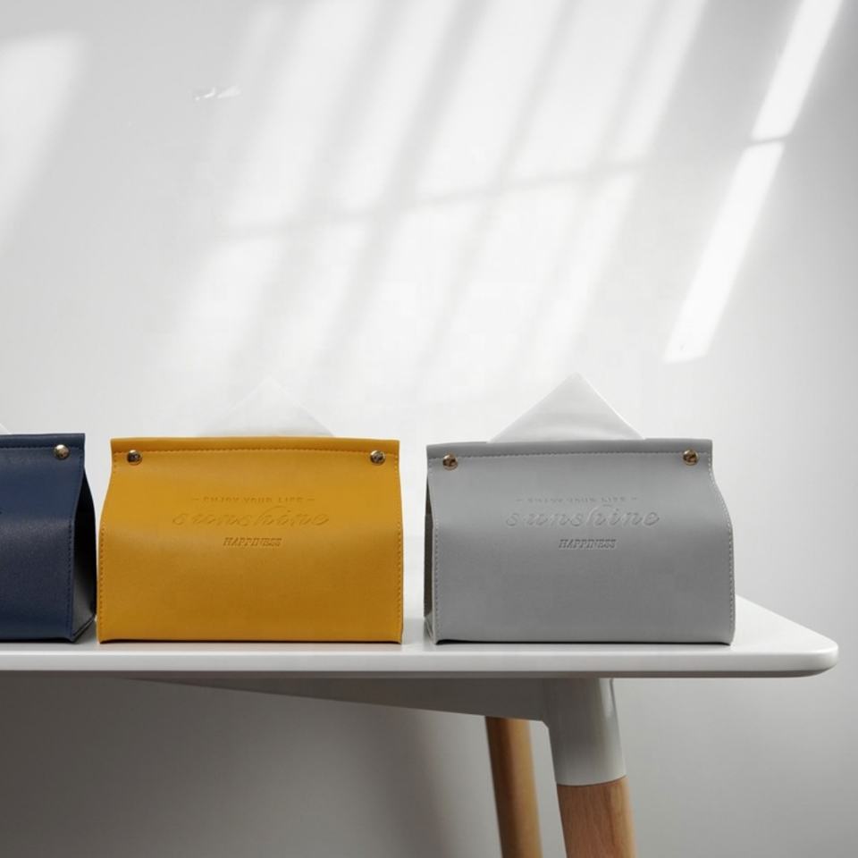PU Leather Tissue Case Simple Rectangle Paper Holder Desktop Storage Container for Home Office Car Accessories