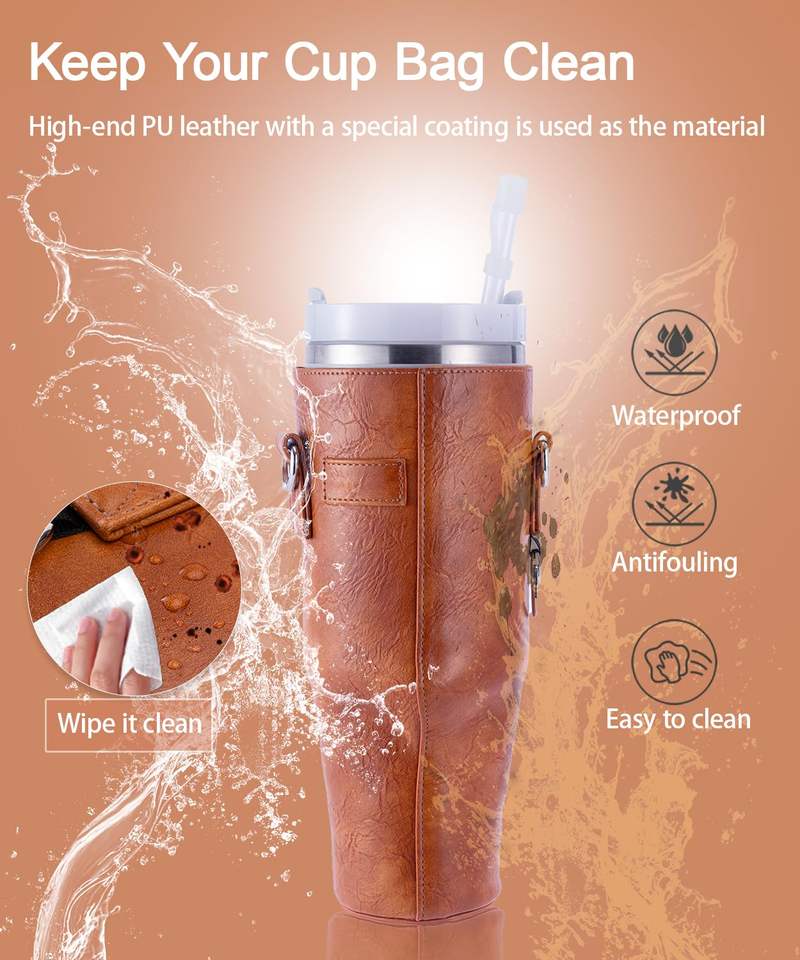 PU Leather Water Bottle Carrier Bag for Stanley 40 oz Tumbler with Handle Water Bottle Holder Pouch with Strap for Stanley Cup