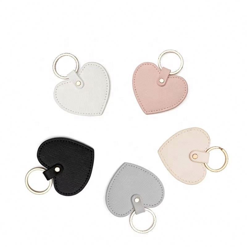 PU Round Leather Heart Bag Charm Pendant Cute Peach Car Keychain Heart Keyring Bulk Leather Keychains