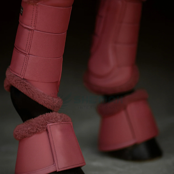 PU leather horse bell boots featuring waterproof durable construction teddy polyester lining perfect for all day equestrian use