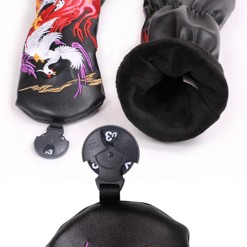 .PU leather wood golf club head cover for mens soft padded liner elastic neck for secure fit and clean looking shell