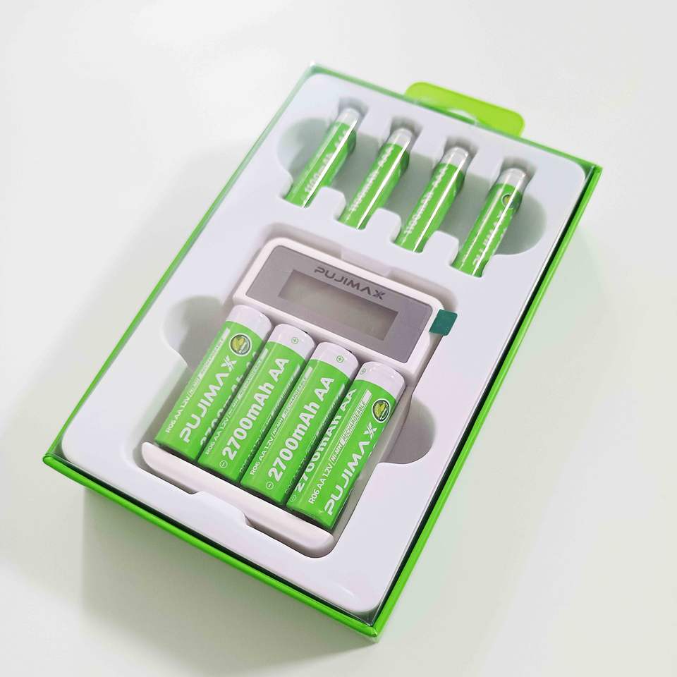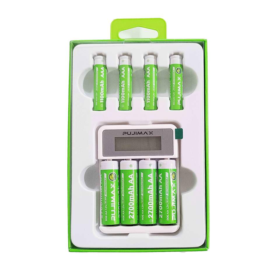PUJIMAX Color Box Package AA AAA 4 Slots 1.2V NMH Rechargeable Batteries Charger AA 2700mAh AAA 1100mAh Battery With Charger