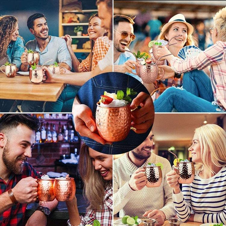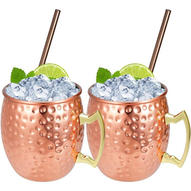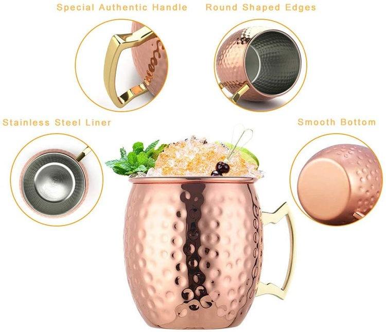 PURPLESEVEN Single Wall Stainless Steel Beverage Drinking Cup Beer Mug 500ml 16oz Hammered Metal Copper Plated Moscow Mule Mugs