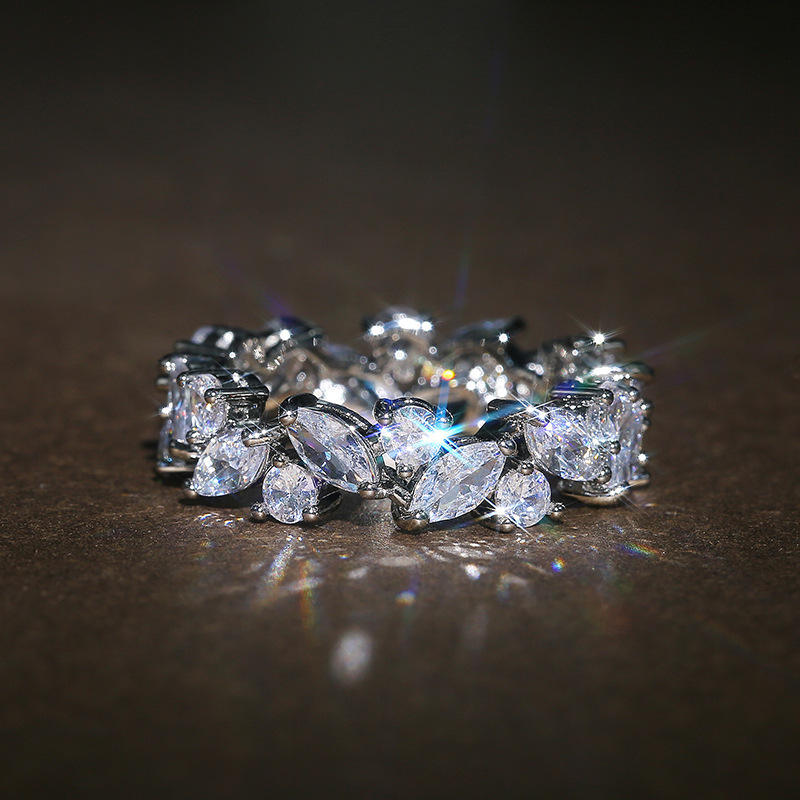 PUXIN Custom Elegant Floral Statement Rings Luxury Crystal Mariquesa Cubic Zircon Classic Style for Wedding or Engagement