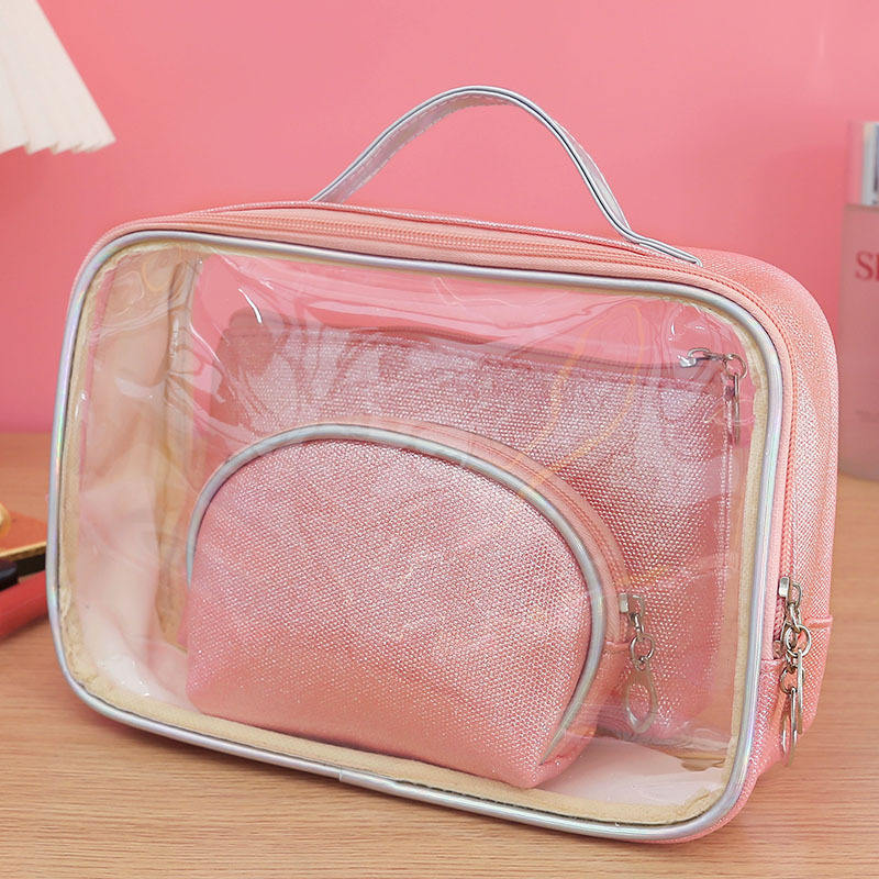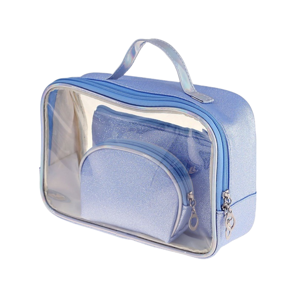 PVC Cosmetic Bag PU Leather Makeup Storage Bags Custom Fashionable 3-Piece Cosmetic Bag Set for Women Travel Outdoor
