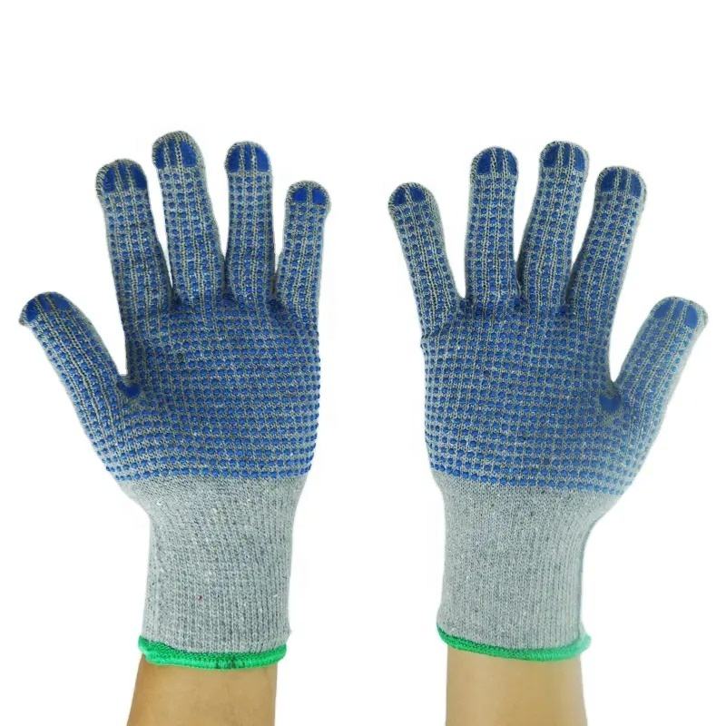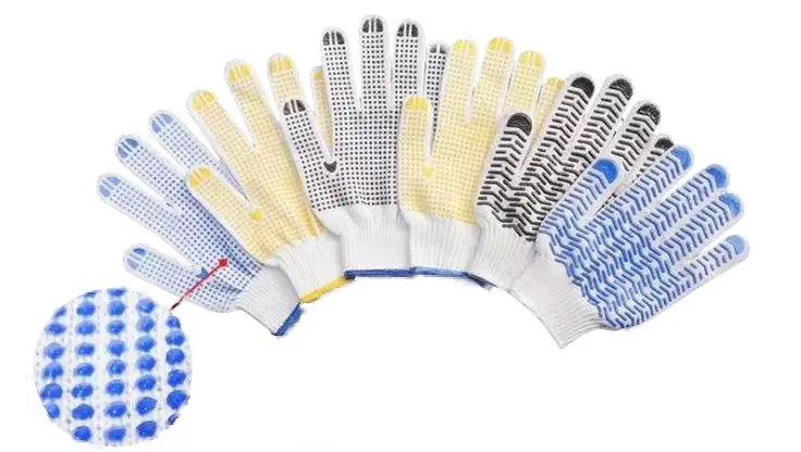 PVC Dotted Cotton Working Hand Gloves Dotted Construction Natural PVC Dots Industry Hand Gloves