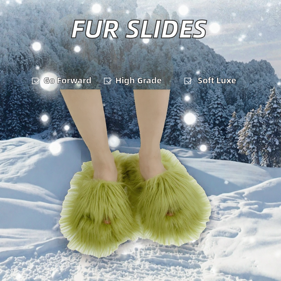 Style:Fur, outdoor slippers, fashionable fur slide