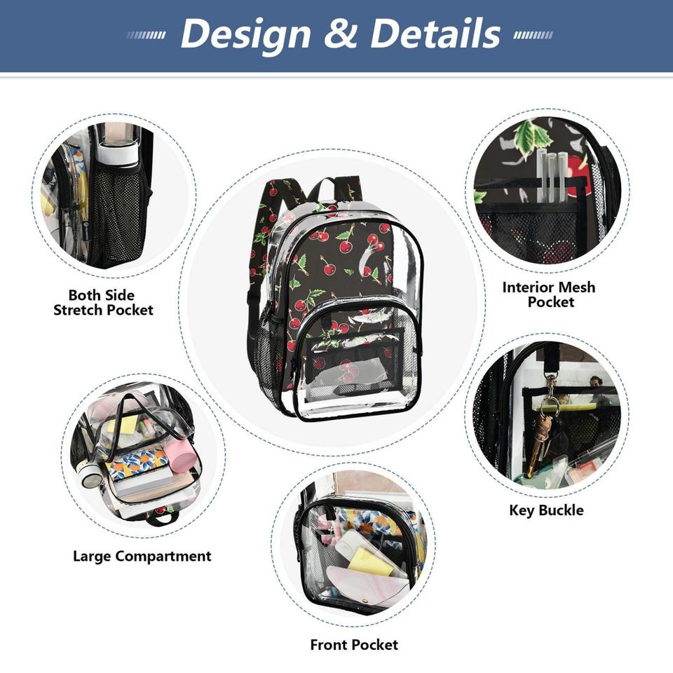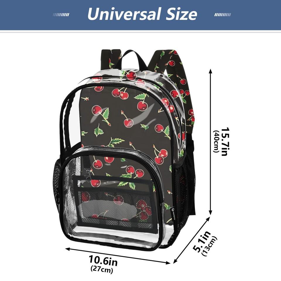 PVC Transparent Large Capacity Backpack Fashion Customs Cherry Design Durable Lightweight Travel Outdoor Clear Backpack