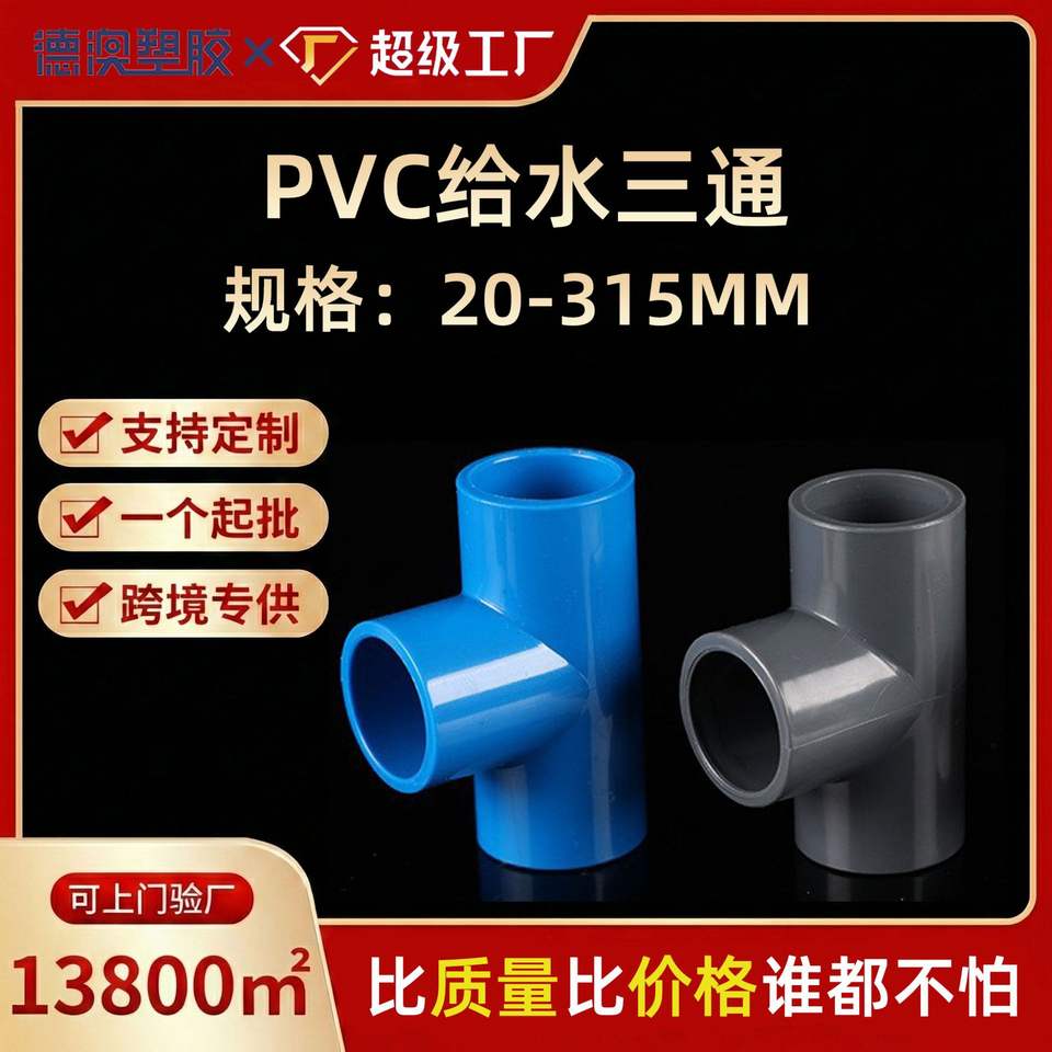 PVC Water Supply Tee Pipe Fittings For Aquarium And Drainage System 3 Way Connector Straight Joint Gray Blue White