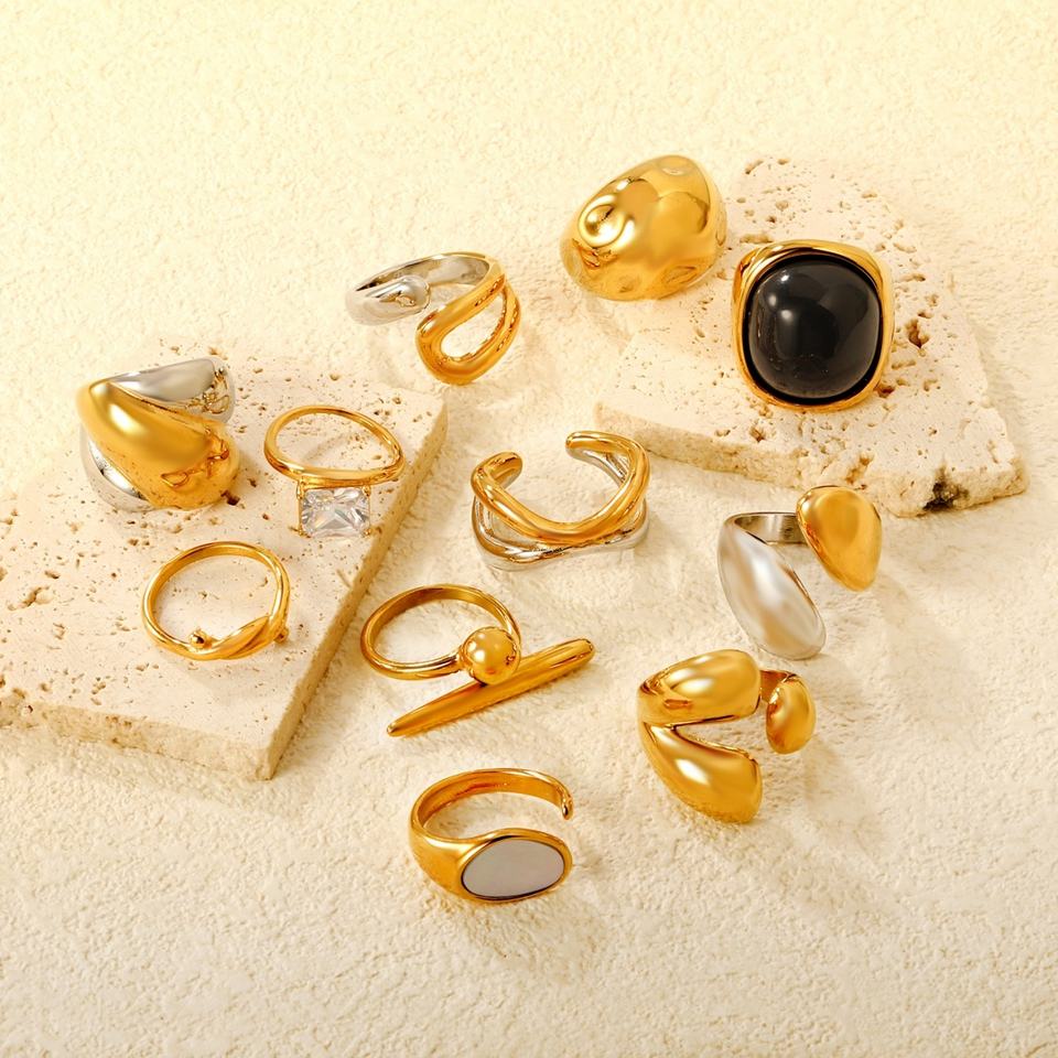 PVD Gold Plated Stainless Steel Open Adjustable Hollow Statement Ring Trendy Geometric Style with Zircon Stone Jewelry for Women