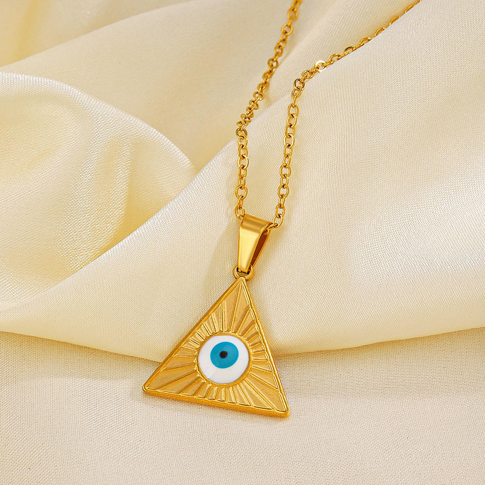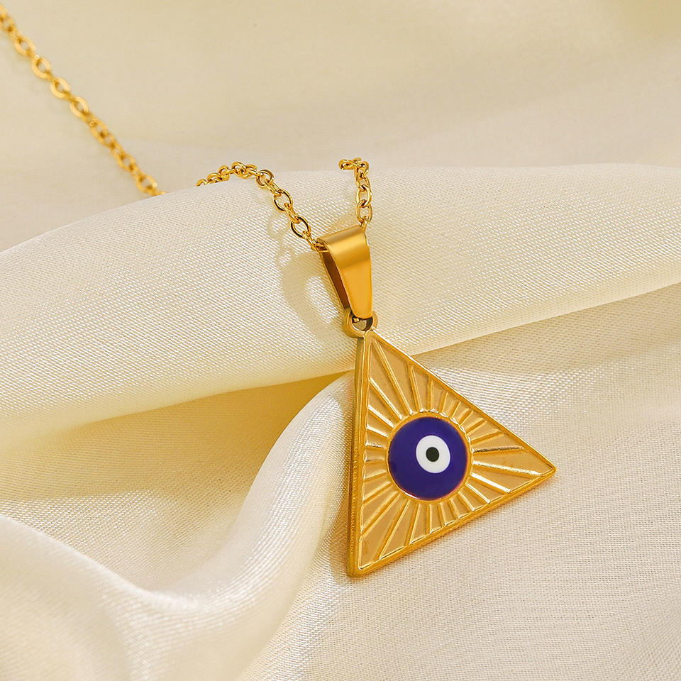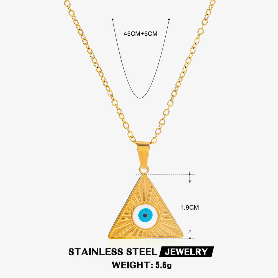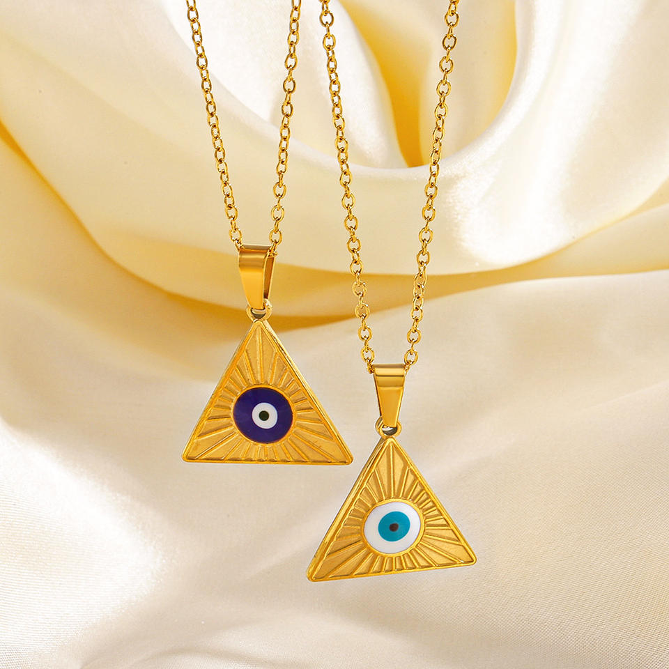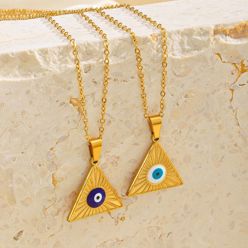 PX Triangle Enamel Evil Eyes Pendant Necklace Vintage Geometric Triangle Enamel Evil Eyes Charm Necklace