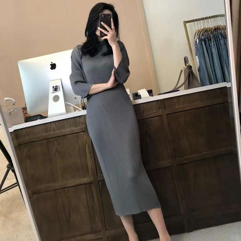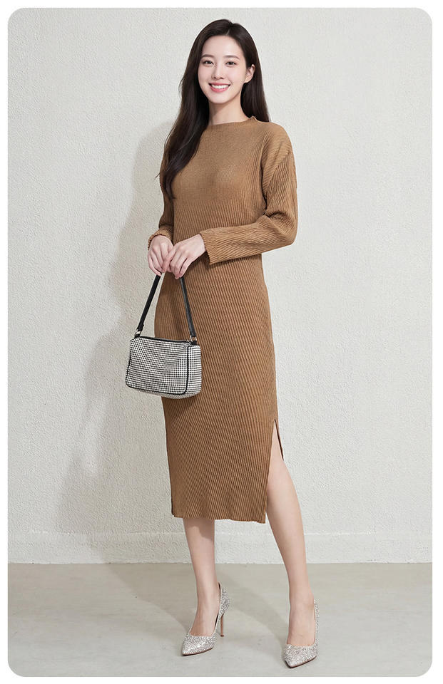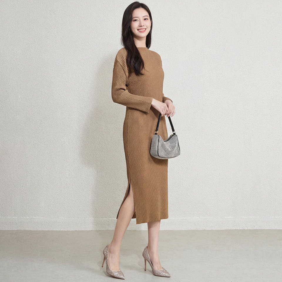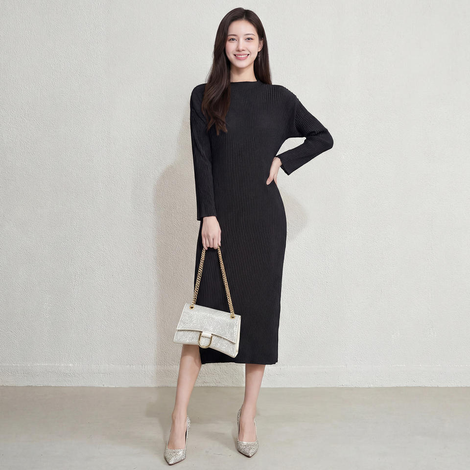 PY Woven Eco-Friendly Pleated Maxi Dress Women Loose Casual Long Sleeve Korean Style Fashion Design Online Wholesale