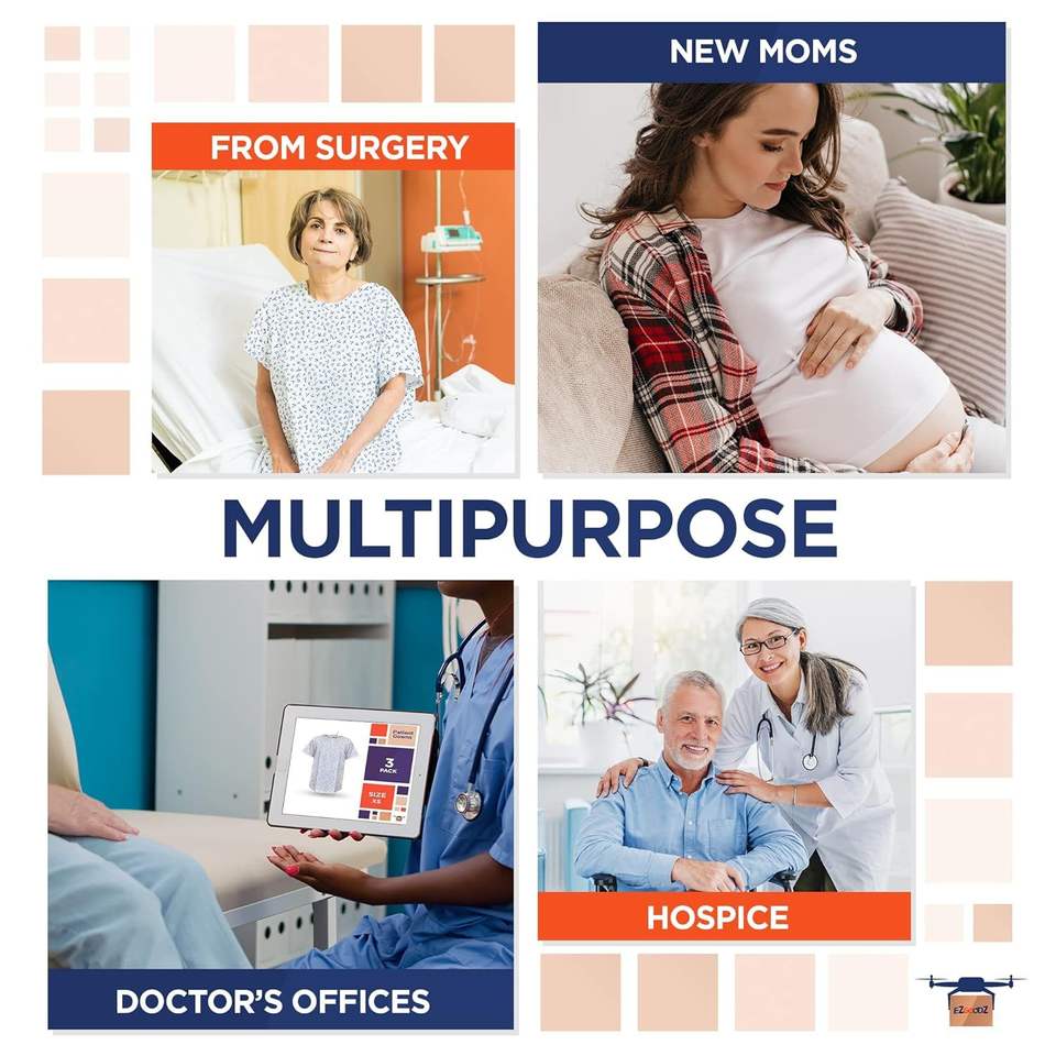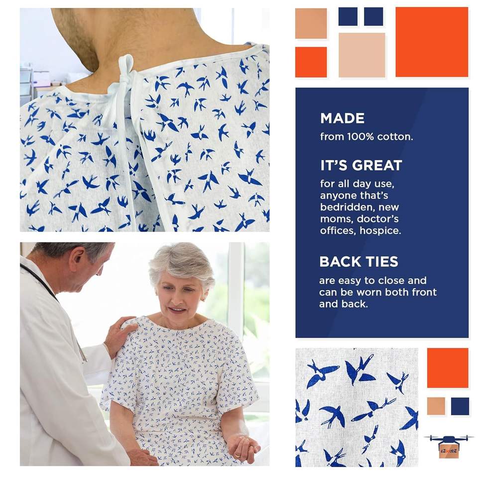 Pack 3 Reusable Unisex X-Small White Robes 100% Cotton Breathable Nursing Hospital Gowns Back Tie Maternity Elderly Half Sleeves