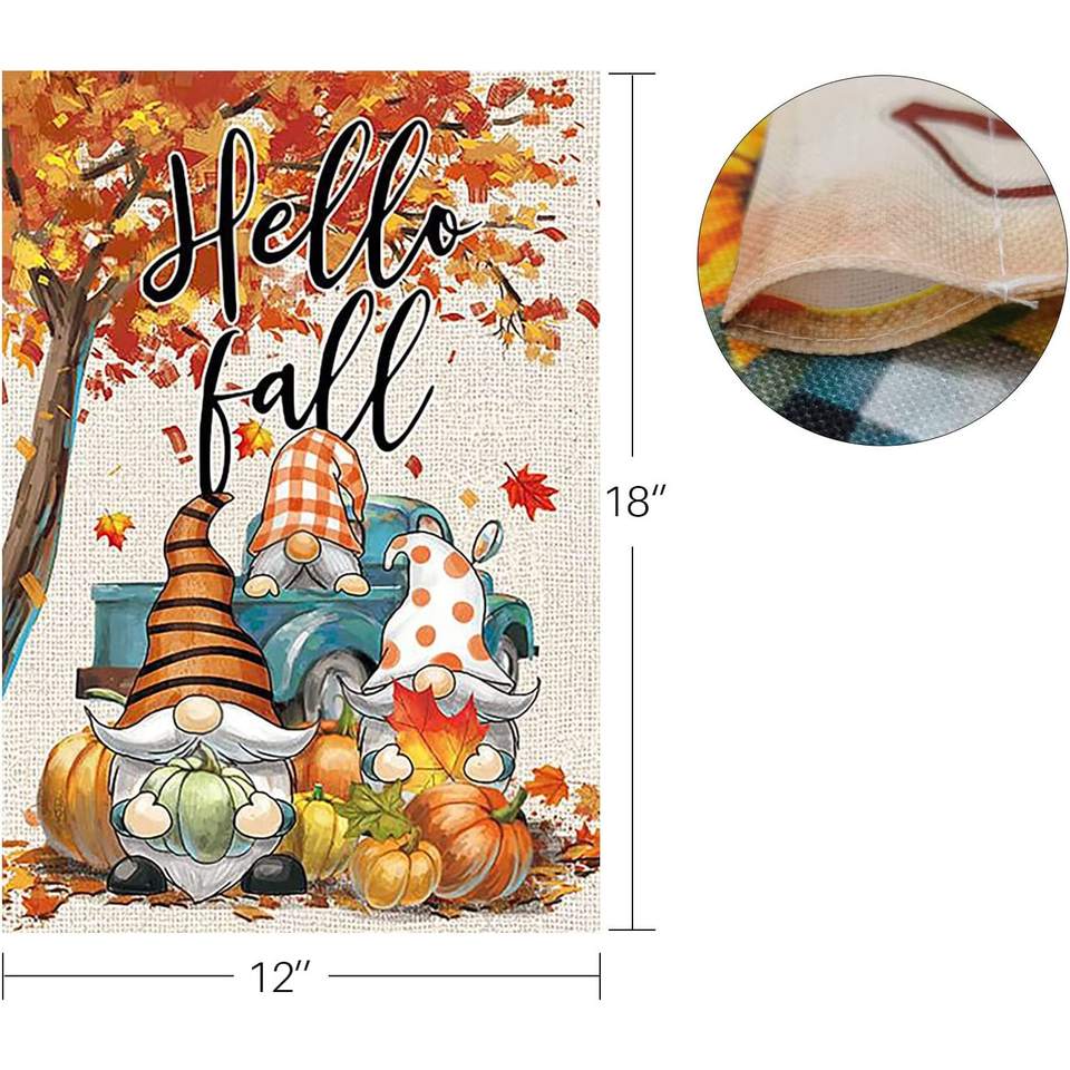 Pack of 2 Happy Fall Garden Flag 12x18 Inch Double Sided, Autumn Gnome Pumpkin Maple Leaves Yard Flags for Farmhouse Porch