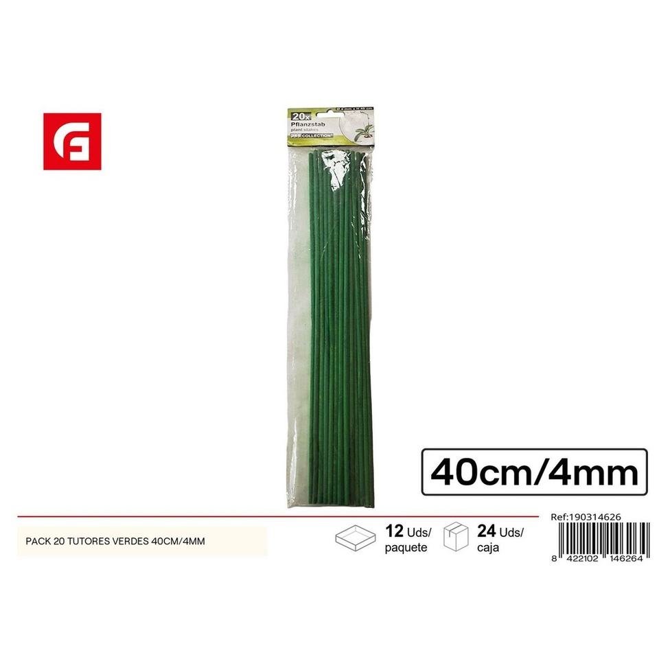 Pack of 20 green stakes 40 cm/4 mm - Practical support for the garden
